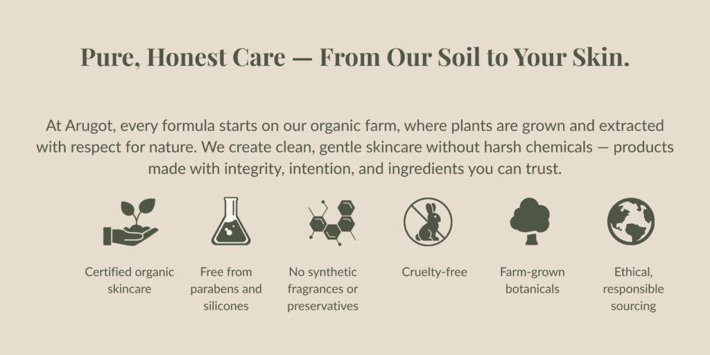 Our purpose is simple: to care for people and the planet with the same integrity we bring to our farm. We believe in transparency, responsible sourcing, and creating high-quality organic skincare that families can trust and use every day. Arugot is built on respect for nature, hands-on craftsmanship, and mindful production. Every product we grow, formulate, and share reflects that commitment.
